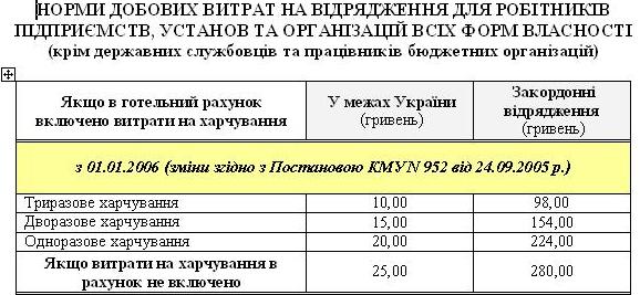 При всем уважении к Вам заявляю однозначно что информация у Вас УСТАРЕЛА!!!! Минимальный размер командировочных составляет не 25 а 30 грн на человека с 29 марта 2008 года!