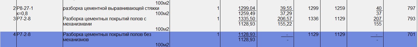 Этих крыш уже сотни сделалось, проверилось, экспертизы получены, и тд. До сего момента ни разу не заморачивался таким вопросом ни я ни один умник из побирушек. Я писал то так, то так, как бог на душу положит. По деньгам они почти одинаковы: разборка стяжки к=0,8 - 1299 грн. разборка полов с мех.= 1336, без мех= 1129 (смотри картинку)