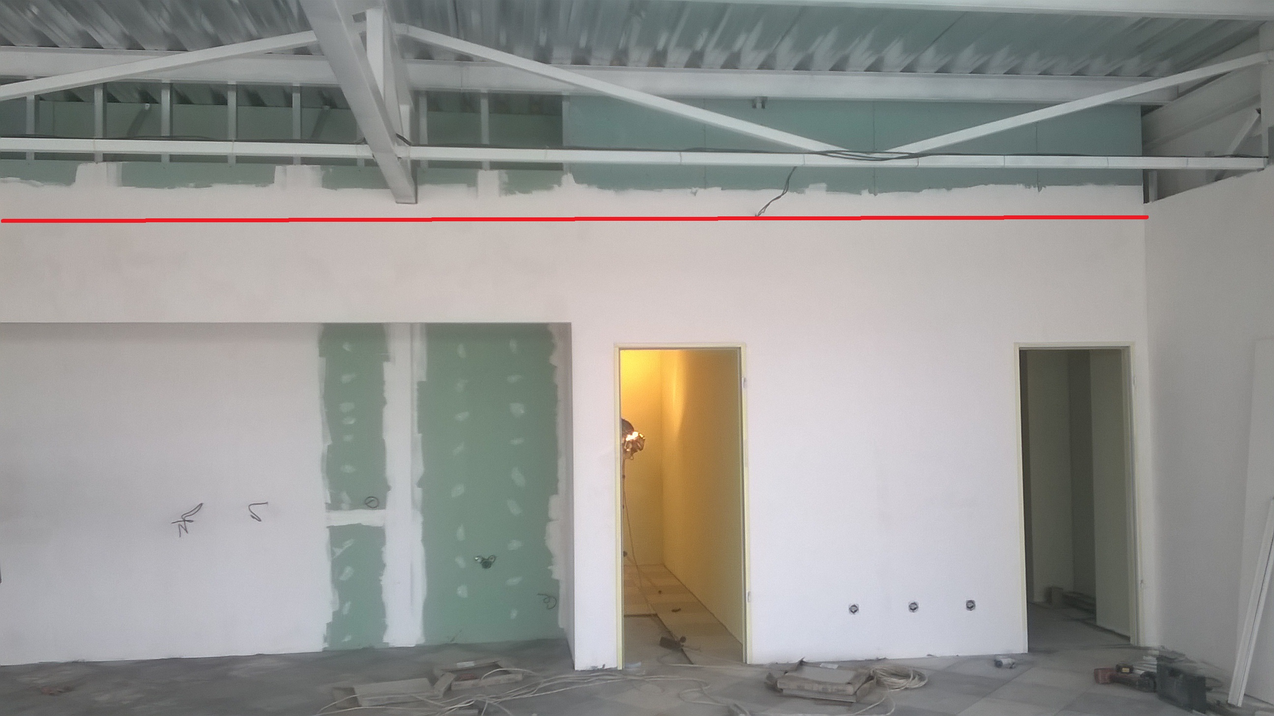 2. Шпаклевка и покраска аналогично, выше подвесного потолка на 100-150 мм, т.к. сначала отделку стен проводили, потом отбивка уровня под подвесной потолок.