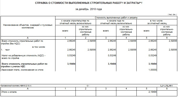 КБ-3в служит основанием для проплаты и если Вы получили аванс, то с начала периода и года будет полная стоимость, а к оплате должна быть сума за вычетом аванса. В АВК при выводе справки в окошке коректировки реквизитов сторйки после наименования стройки расположена строкка "Авансовая плата, вичетаемая из итого тис.грн.