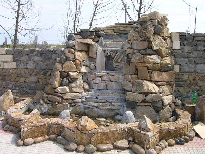 это бюджет, работы: копание ямы, монтаж вот этого вот бассейна, устройство фэм вокруг него, устройство горки из дикого камня и водопад3